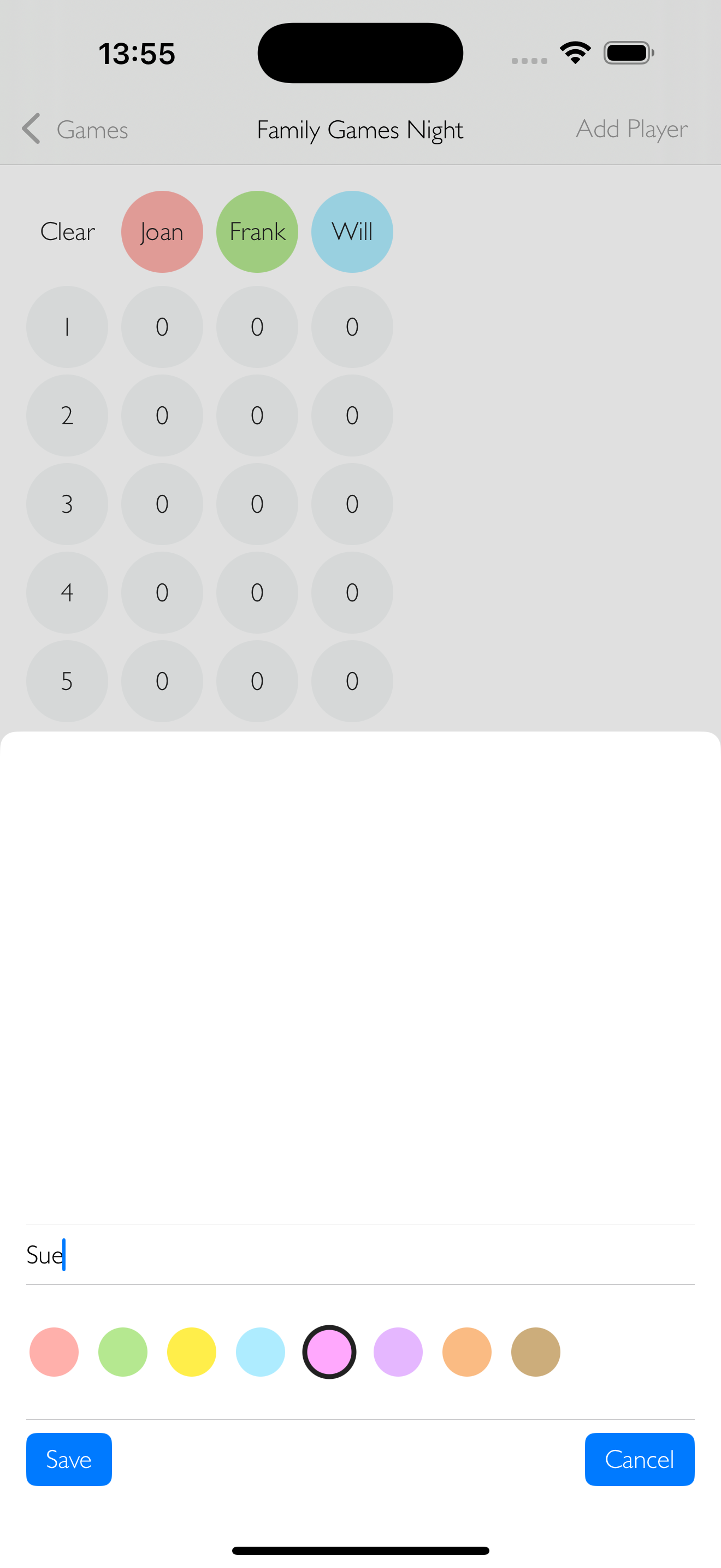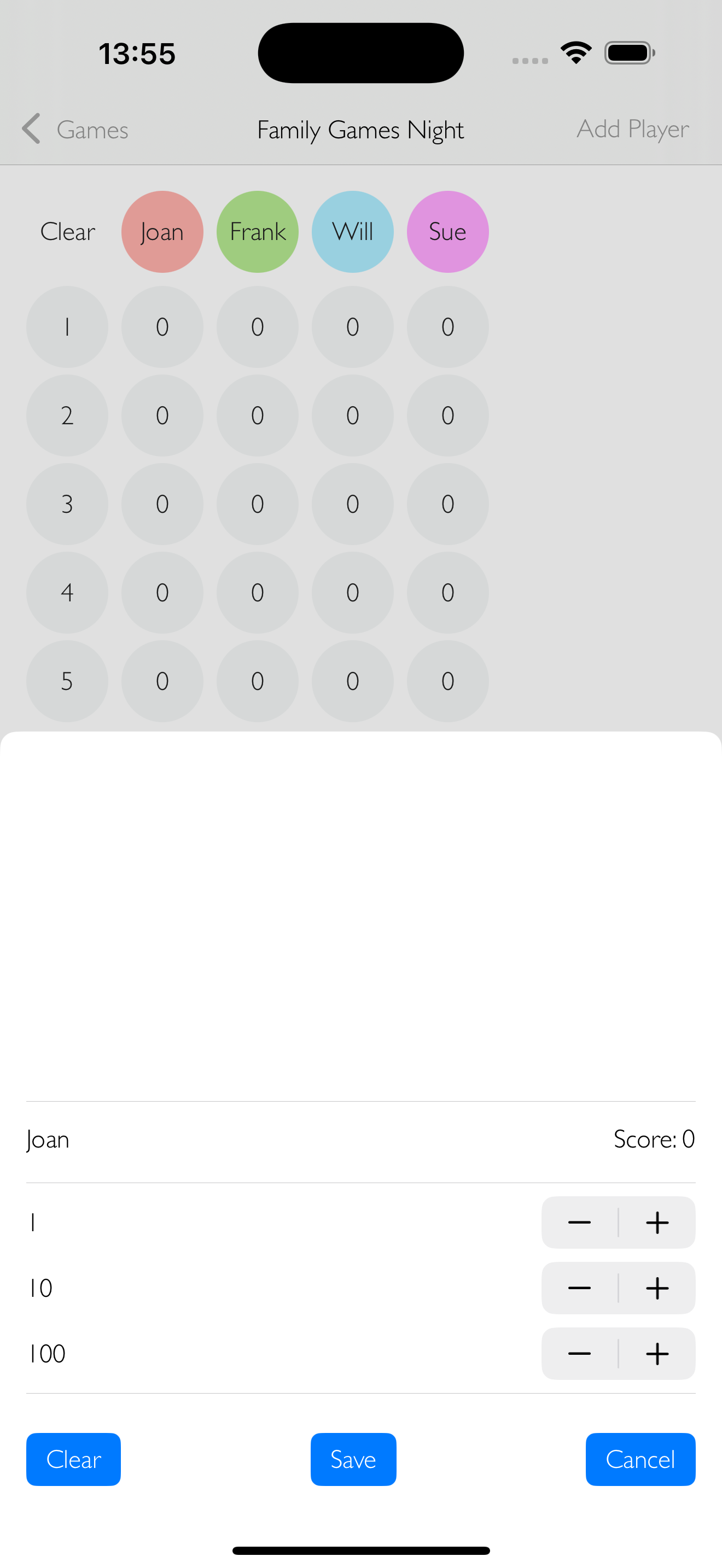Simplistic, minimalistic design so that you can focus on quickly and easily creating and scoring games.